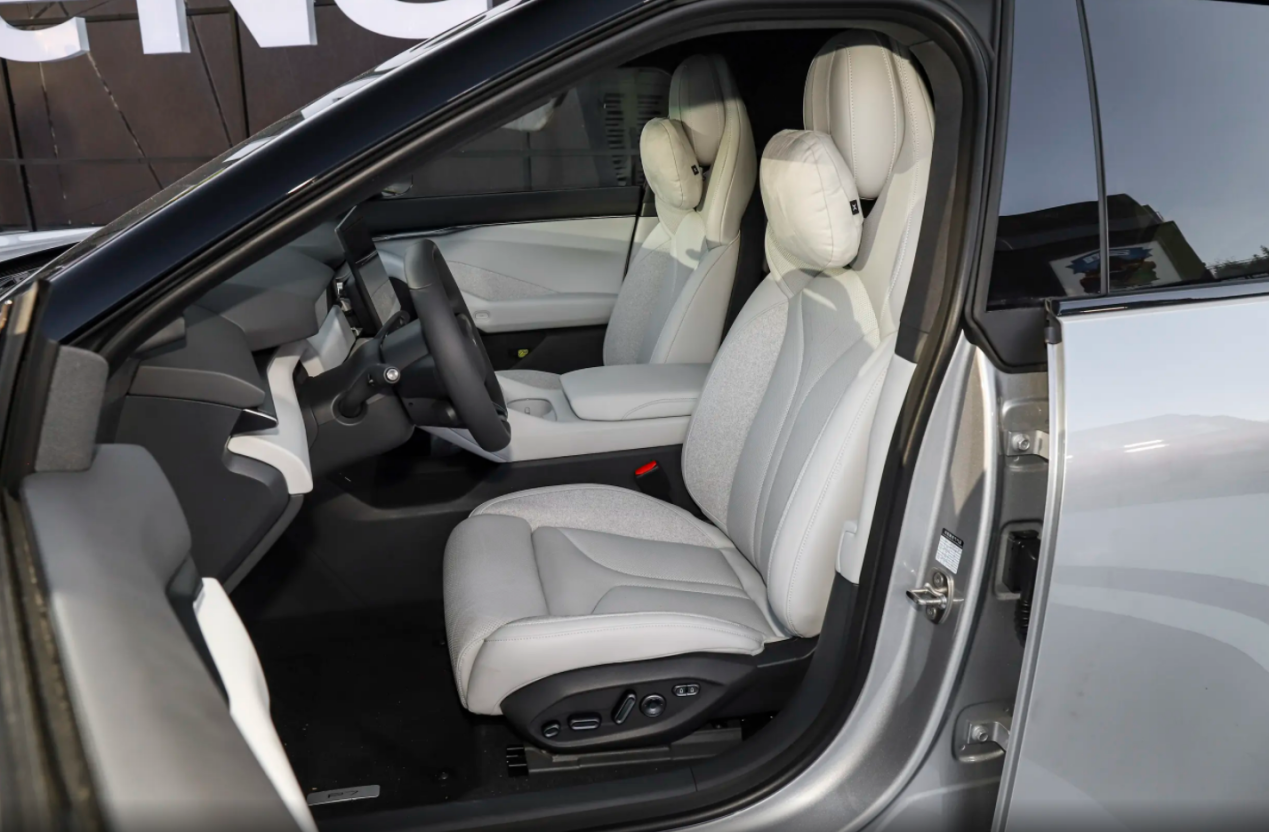 最后就是顶配版本的小鹏新P7,价格上这台车来到了30.18万元,与前者的价格落差确实很大。相比之下,这台鹏翼版的“剪刀门”确实需要更高的成本,而且该车还有专属的内外饰运动套件,以及专属的车漆配色和翻毛皮的运动座椅。另外,其实从25.98万元的四驱版开始,就新增了电吸门,以及模拟声浪的配置。